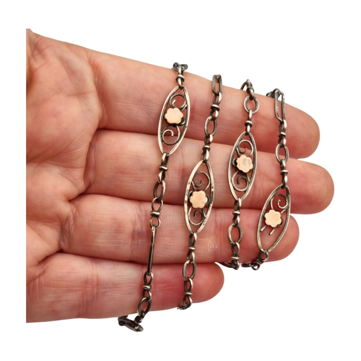 Estado: Estos artículos no son nuevos; presentan signos de desgaste y pueden presentar rayones e imperfecciones propias de su antigüedad y uso. Examine las fotos detenidamente, en esta pieza uno de los eslabones tiene un detalle con faltas, que se puede retirar o conservar. Ofrecemos una descripción precisa, si necesitas confirmar un detalle, escríbenos antes de comprar.