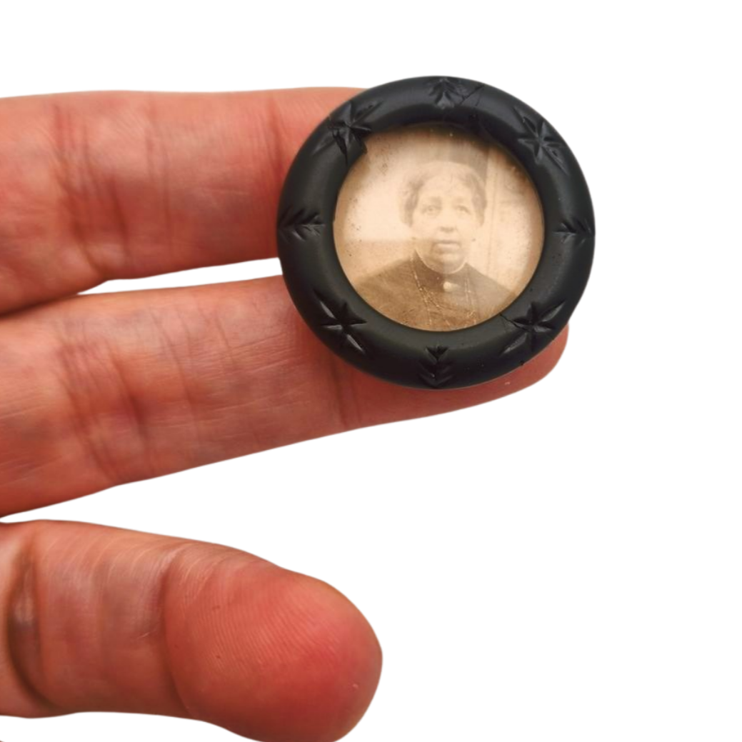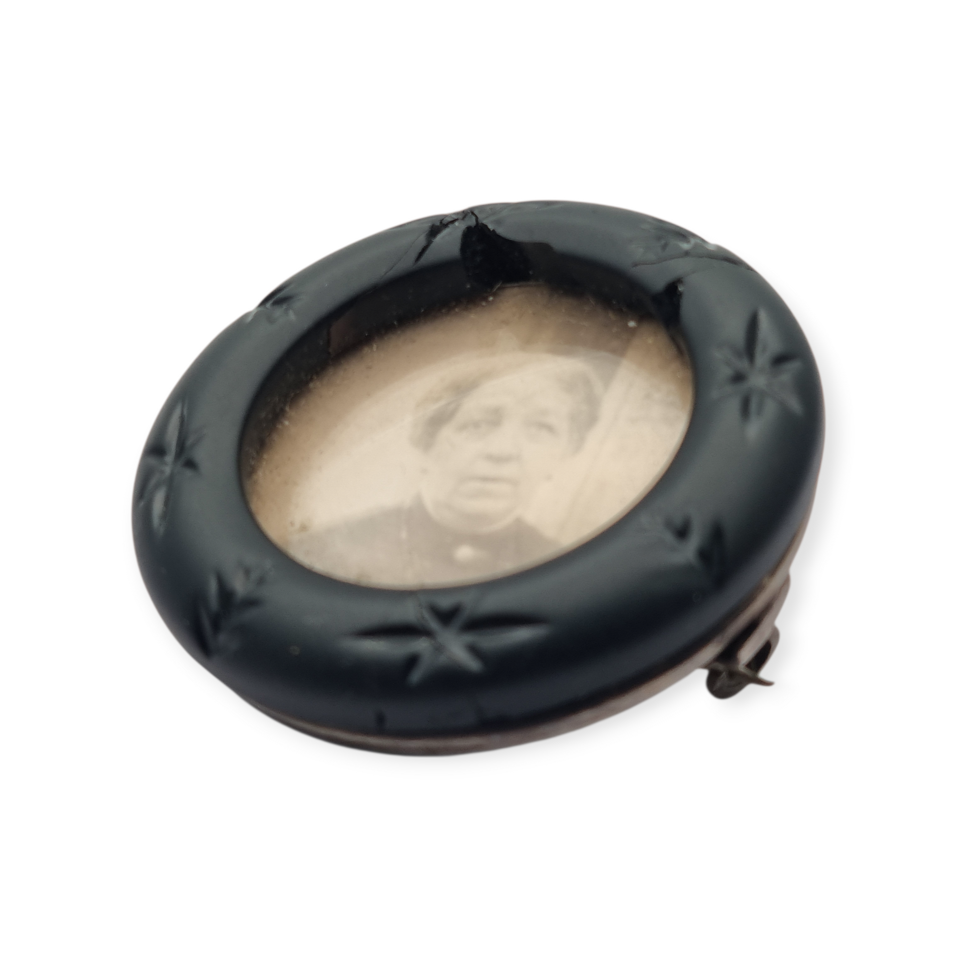 Conserva fotografía antigua en su interior. Este tipo de joyas sentimentales fue muy popular a finales del siglo XIX y principios del XX, especialmente en el contexto de joyería de recuerdo y luto.