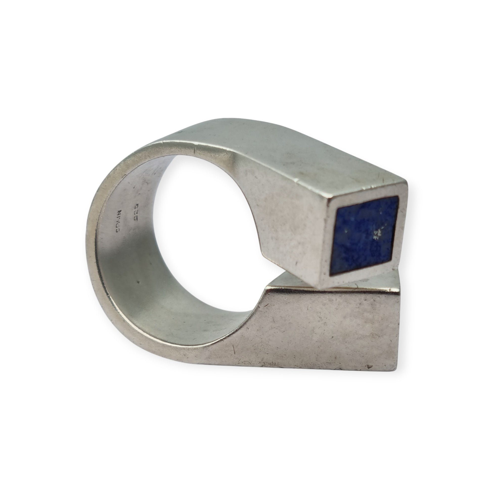 Brutalist ring in 925 silver with geometric design lapis lazuli, Spain 1970–1980