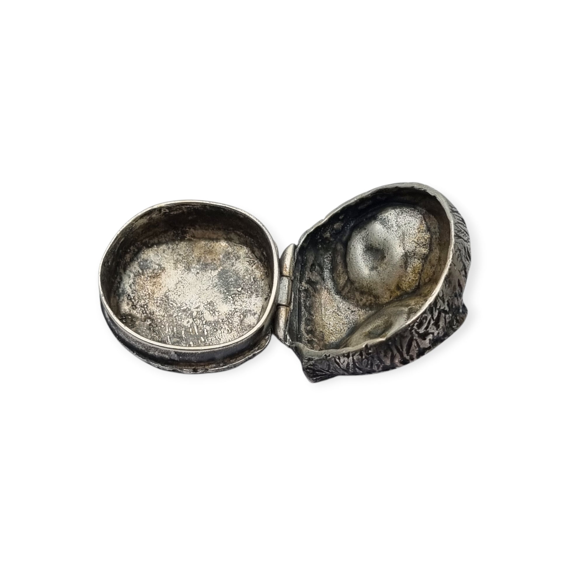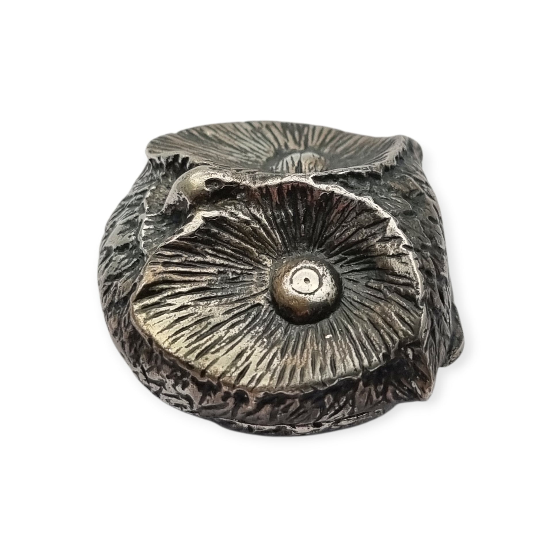 Unique Italian box in solid 800 silver in the shape of an owl's head, with an expressive and stylized design typical of the animalistic taste of the 70s. The piece shows the owl with one eye open and the other closed, as if in a wink full of character, humor and symbolism.