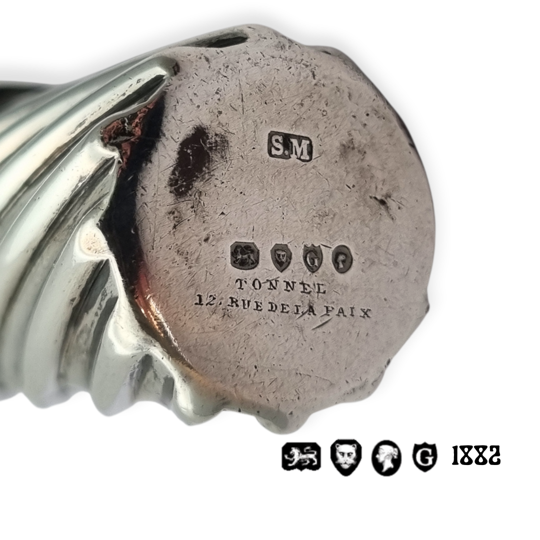 - Stamps or Hallmarks: "S.M" lion anchor letter G "Tonnel 12 Rue de la Paix"